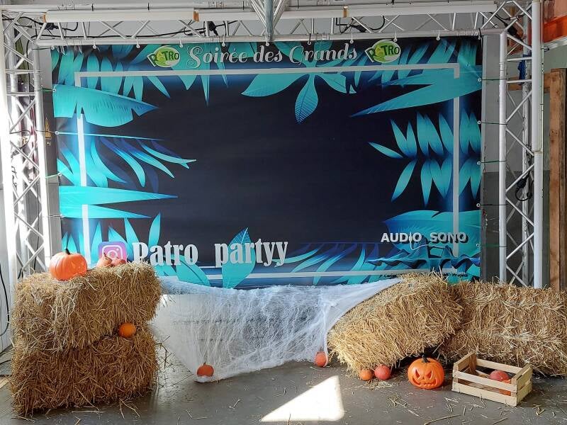 Une toile de fond personnalisable sur structure avec un éclairage adapté